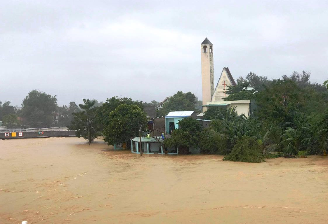 Nước trên các sông ở Đà Nẵng vẫn đang lên, nhiều khu vực bị ngập nặng.