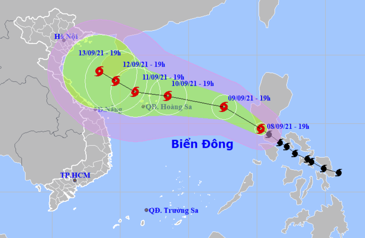 Dự báo trong 24 giờ tới, bão di chuyển theo hướng Tây Bắc, mỗi giờ đi được 10-15km, như vậy trong đêm nay (8/9) bão đi vào Biển Đông.
