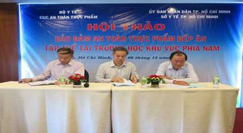 (VTC News) - Cục An toàn thực phẩm phối hợp với Sở Y tế TP.HCM tổ chức Hội thảo bảo đảm an toàn thực phẩm bếp ăn tập thể tại trường học khu vực phía Nam năm 2015.