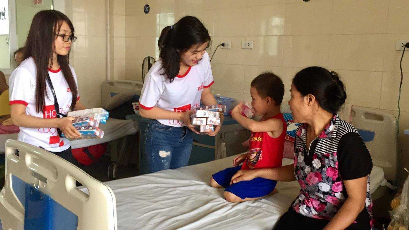 Các thành viên đoàn từ thiện mong muốn tiếp thêm động lực và niềm tin cho các em, động viện các em luôn giữ tinh thần lạc quan vượt qua bệnh tật.