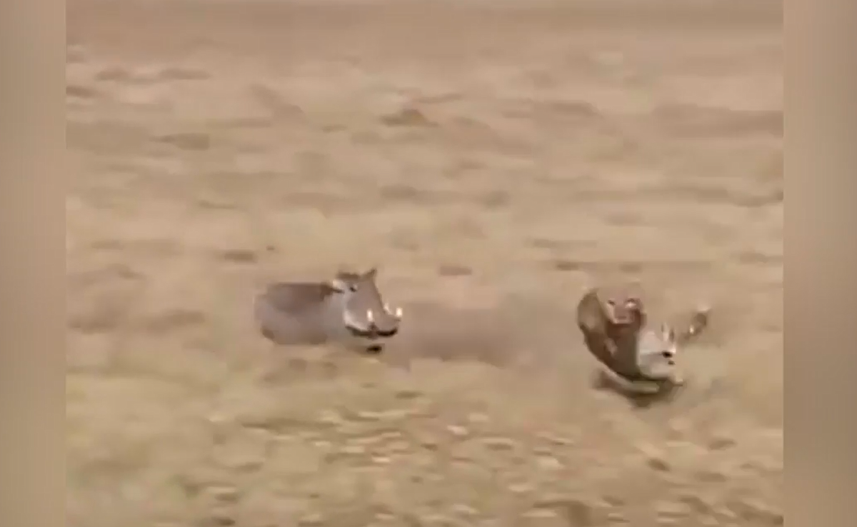 Thật ngược đời khi kẻ săn mồi khét tiếng như báo lại phải cong lưng chạy thục mạng trước sự truy đuổi của lợn rừng.