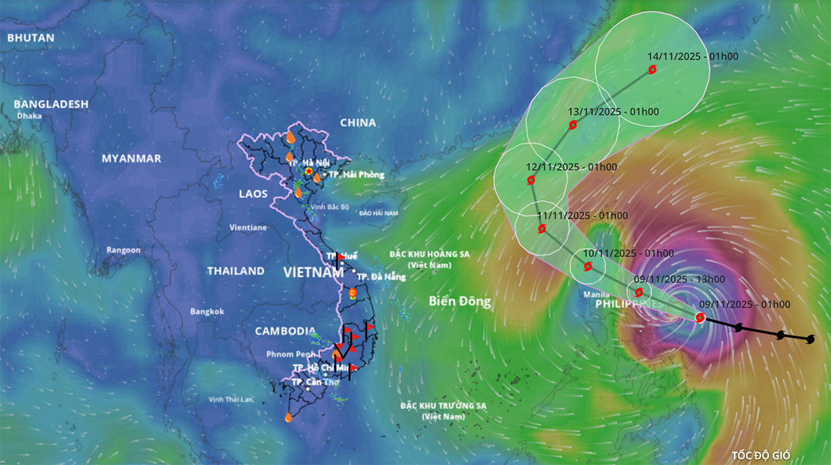 Khoảng sáng 10/11, bão Fung - Wong khả năng di chuyển vào vùng biển phía Đông của khu vực Bắc Biên Đông, trở thành cơn bão số 14 hoạt động trên khu vực biển này trong năm 2025.