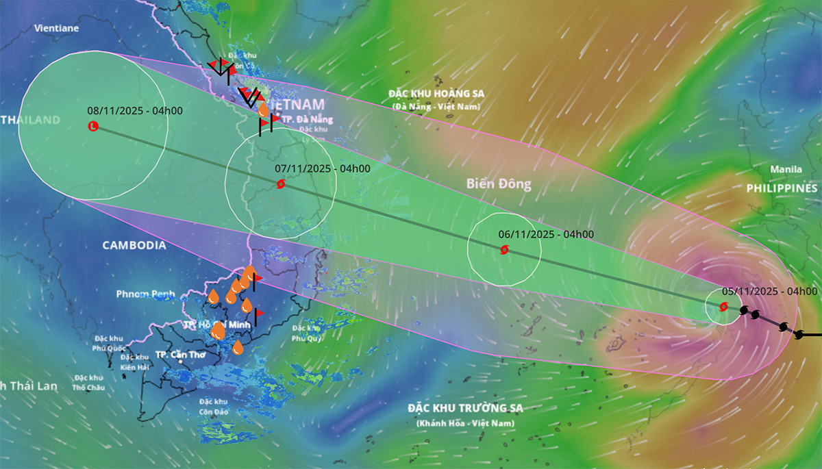 Bão có thể đạt cường độ trên cấp 14 khi ở đặc khu Trường Sa và trên vùng biển Đà Nẵng - Khánh Hòa", cơ quan khí tượng nhận định.