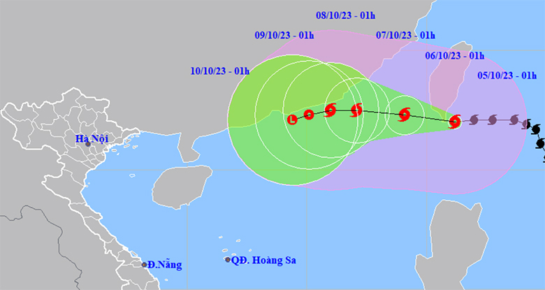 Khoảng 1h ngày 7/10, bão trên vùng biển phía Đông Nam tỉnh Quảng Đông (Trung Quốc), được dự báo không đổi hướng và tốc độ di chuyển, đi vào vào Biển Đông và suy yếu dần. Sức gió mạnh nhất vùng gần tâm bão cấp 10, giật cấp 12. Khu vực chịu ảnh hưởng: Phía Đông Bắc khu vực Bắc Biển Đông.