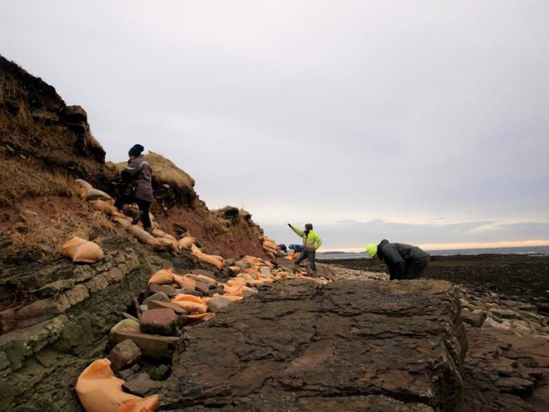 Các tình nguyện viên đặt các bao cát tại các bãi biển để ngăn tình trạng xói món. (Ảnh: University of the Highlands and Islands)