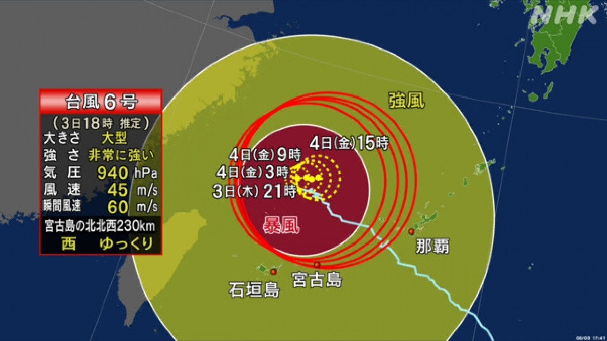 Dự báo đến tối 3/8, cơn bão số 6 sẽ mạnh lên với tốc độ gió hơn 230 km/h. Cơ quan khí tượng cản báo mưa lớn, kêu gọi người dân không đi ra khỏi nhà hoặc tạm trú tại khu vực đảm bảo an toàn.