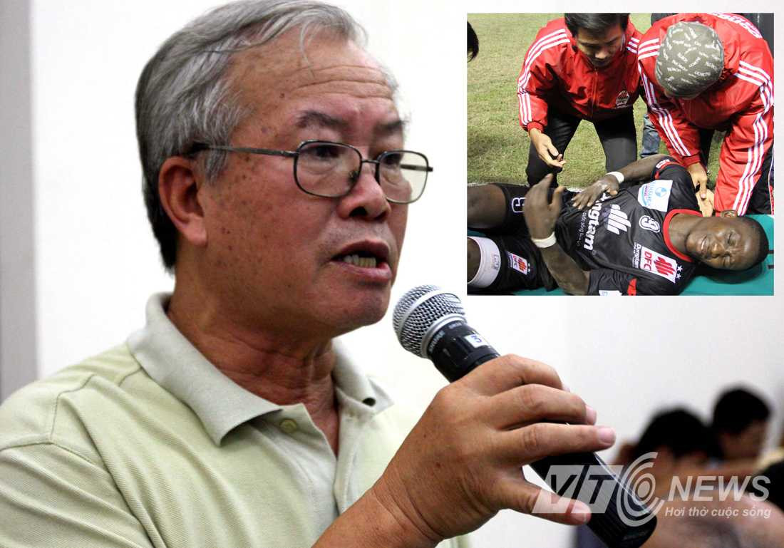 Bạo lực sân cỏ Việt không còn là vấn đề của Thể thao, nó đã mang tính xã hội. Trong ảnh, cầu thủ Danny David (ĐTLA) bị chấn thương sau cú đạp thẳng vào ngực của Đinh Văn Ta (V.Ninh Bình) (Ảnh: VSI)