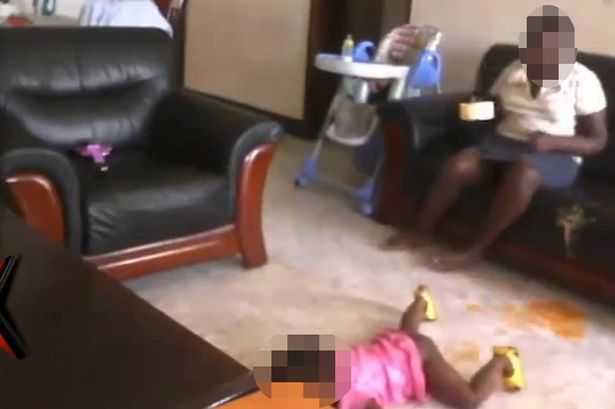 Hình ảnh này được cha mẹ em bé ghi lại bằng một camera giấu kín, 2 người nghi ngờ bảo mẫu hành hạ con mình do trên thân thể của em có những vết bầm tím.