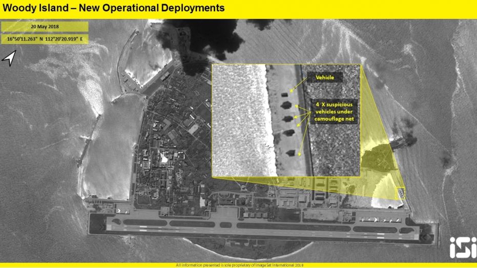 Theo Fox News, hình ảnh được Imagesat International (ISI) chụp ngày 20/5 cho thấy hai bệ phóng tên lửa mới trên bờ phía Bắc của đảo, gần một hệ thống radar, tất cả đều được phủ lưới ngụy trang.