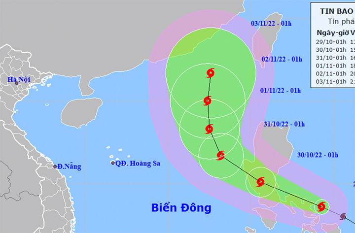 Theo Trung tâm Dự báo Khí tượng Thuỷ văn Quốc gia, lúc 1h ngày 29/10, tâm bão Nalgae đang ở vùng biển phía Đông miền Trung Philippines. Sức gió mạnh nhất vùng gần tâm bão mạnh cấp 9-10 (75-102km/giờ), giật cấp 12. Dự báo ngày 30/10, bão sẽ tiến vào Biển Đông.