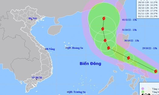Dự báo bão có khả năng mạnh thêm và đi vào Biển Đông trong ngày 30/10. Lúc 13h ngày 30/10, bão di chuyển chủ yếu theo hướng Tây Tây Bắc với tốc độ 15-20 km/h, cường độ mạnh cấp 10, giật 12.
