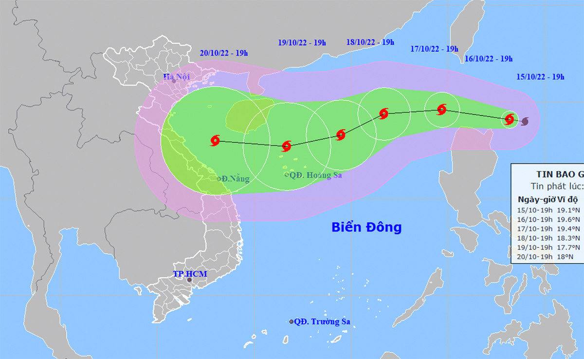 Theo Trung tâm Dự báo Khí tượng Thủy văn quốc gia, lúc 19h hôm nay 15/10, vị trí tâm bão Nesat cách đảo Luzon (Philippines) khoảng 114km về phía Đông Bắc. Sức gió mạnh nhất vùng gần tâm bão mạnh cấp 8 (62-74km/giờ), giật cấp 10.