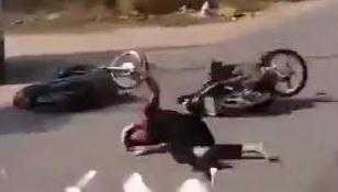 (VTC News) - Clip một người đàn ông không hiểu vì lý do gì điều khiển xe máy sang phần đường ngược chiều và đấu đầu với một xe khác xuất hiện trên báo nước ngoài.