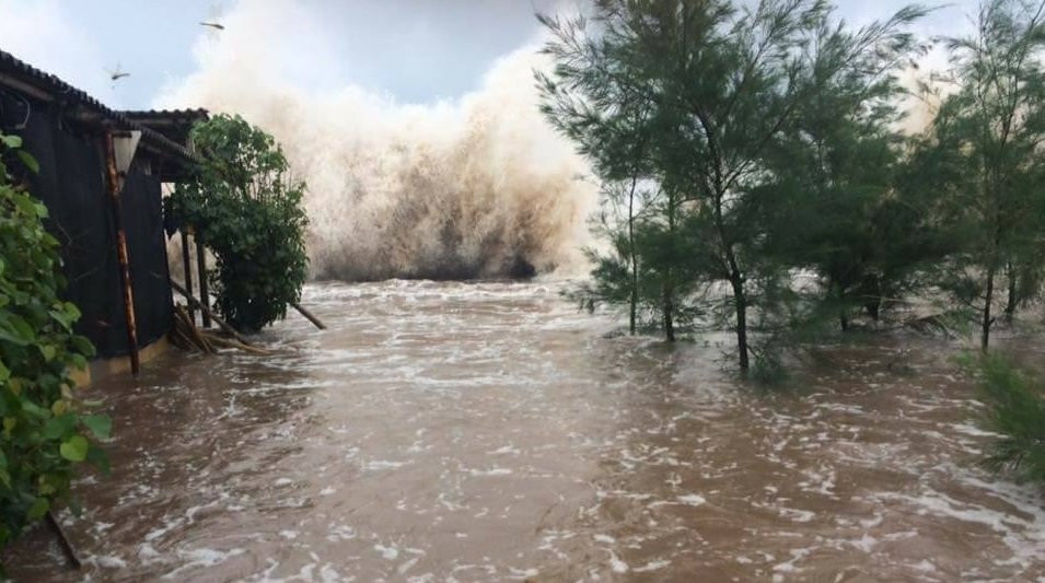 Gió to khiến nhiều biển quảng cáo, cây cối và những nhà hàng lợp tạm bằng lá, ngói xi măng bị tốc mái. Nước biển cũng xâm thực tận sâu trong thị trấn khiến nhiều gia đình phải sơ tán. Hiện tại, sóng to, gió lớn và biển vẫn đang động dữ dội.