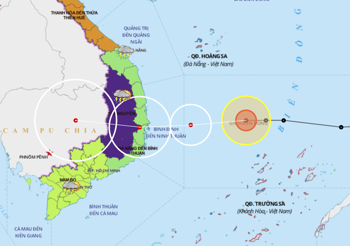 Từ đêm nay, vùng biển ngoài khơi các tỉnh từ Quảng Ngãi đến Ninh Thuận có mưa bão, gió mạnh dần lên cấp 6-7, vùng gần tâm bão đi qua cấp 8-9, giật cấp 11, biển động rất mạnh, sóng biển cao 4,0-6,0m.