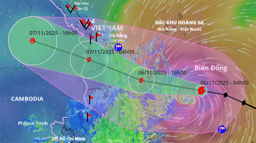 Ven biển từ TP Huế đến Đắk Lắk nước dâng do bão cao 0,4-0,8m. Từ chiều 6/11, ven biển từ TP Huế đến Đắk Lắk đề phòng mực nước biển dâng cao kèm theo sóng lớn gây ngập úng tại khu vực trũng thấp, sóng tràn đê, đường giao thông ven biển, sạt lở bờ biển, làm chậm thoát lũ trên khu vực.
