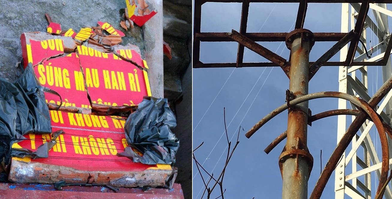 Biển tin của đơn vị hải quân bị hư hỏng sau cơn bão số 16.