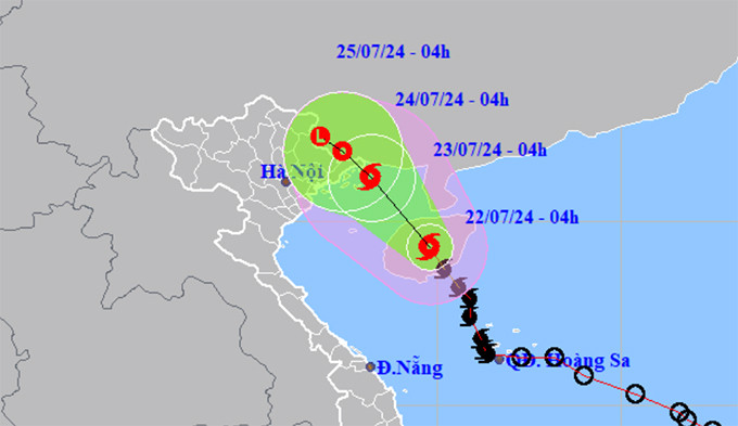 Ngoài ra, từ đêm 22/7 đến ngày 24/7, Bắc Bộ và Thanh Hóa có thể xảy ra mưa vừa, mưa to và dông, cục bộ có nơi mưa rất to với tổng lượng mưa phổ biến ở ven biển Bắc Bộ và khu vực Đông Bắc Bắc Bộ 100-200mm, có nơi trên 250mm; các nơi khác ở Bắc Bộ và Thanh Hóa 50-100mm, có nơi trên 150mm.