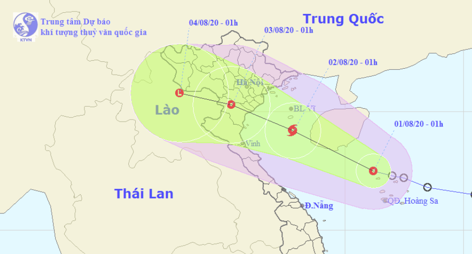 Dự báo trong 12 giờ tới, bão di chuyển theo hướng Tây Tây Bắc, mỗi giờ đi được 15-20km, đi vào Vịnh Bắc Bộ. Đến 4h ngày 2/8, vị trí tâm bão ở trên vùng biển các tỉnh từ Thái Bình đến Nghệ An. Sức gió mạnh nhất vùng gần tâm bão mạnh cấp 8 (60-75km/giờ), giật cấp 10.