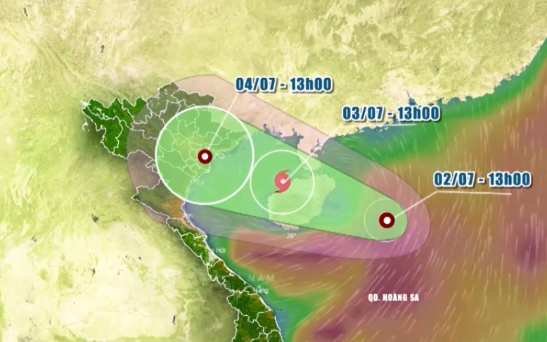Hồi 13h ngày 3/7, vị trí tâm bão ở vào khoảng 19,4 độ Vĩ Bắc; 108,5 độ Kinh Đông, cách huyện đảo Bạch Long Vĩ khoảng 130km, cách đất liền các tỉnh Quảng Ninh-Nam Định khoảng 240km về phía Đông Đông Nam. Sức gió mạnh nhất vùng gần tâm bão mạnh cấp 8 (60-75km/giờ), giật cấp 11. Bán kính gió mạnh cấp 6, giật cấp 8 trở lên khoảng 120km tính từ tâm bão.