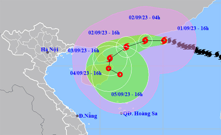 Khoảng 16h ngày 3/9, bão trên vùng biển phía Đông của bán đảo Lôi Châu (Trung Quốc), di chuyển theo hướng Tây Nam, tốc độ 5-10 km/h. Sức gió mạnh nhất vùng gần tâm bão cấp 8-9, giật cấp 11.