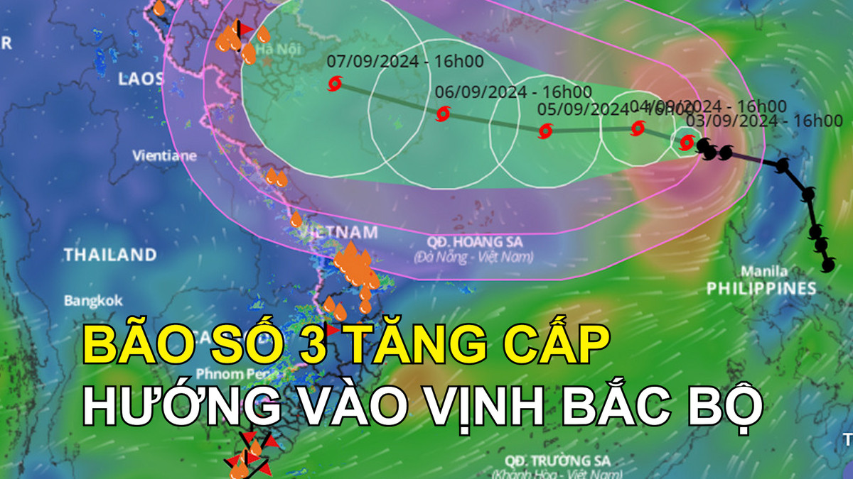 Bão số 3 liên tục tăng cấp hướng vào vịnh Bắc Bộ