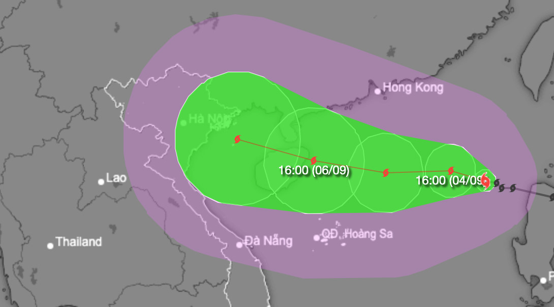 Dự báo đến 16h ngày 4/9, bão số 3 cách đảo Hải Nam (Trung Quốc) khoảng 700km về phía Đông, di chuyển theo hướng Tây Tây Bắc, tốc độ khoảng 10km/h. Sức gió mạnh nhất vùng gần tâm bão mạnh cấp 11, giật cấp 13. Khu vực chịu ảnh hưởng: Phía Đông của khu vực Bắc Biển Đông.