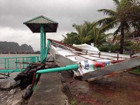6h: Theo một công nhân có mặt tại một công trường ở TP.Hạ Long, vào đêm hôm qua, khi cả công trường đang ăn cơm, cơn bão đổ bộ vào khiến mọi người bỏ chạy thoát thân, để lại tài sản như xe máy, đồ đạc cá nhân tại lán trại. Sau vài phút, lán trại bị gió quật nát.