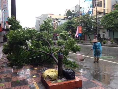Tại Hà Nội, bão số 3 đã thổi tung gốc si trăm tuổi ở Hồ Gươm đêm qua. Các nhân viên cây xanh đô thị đang khắc phục những nơi cây xanh đổ để thông suốt giao thông.