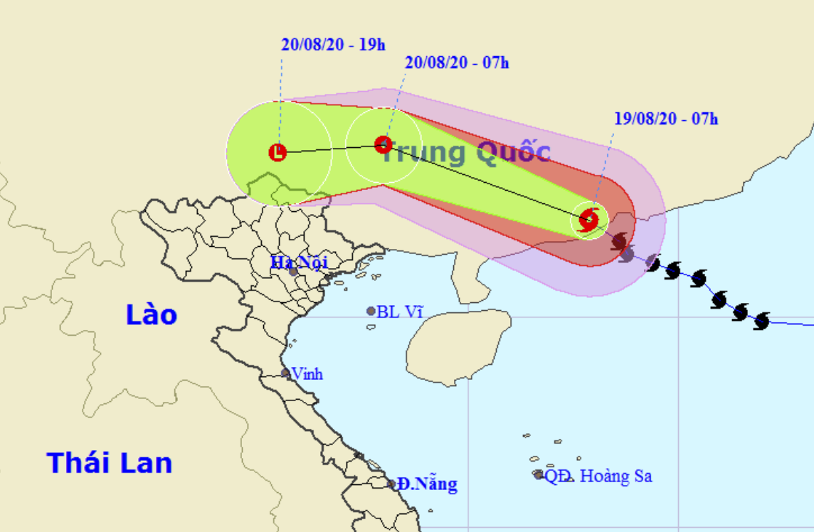 Đến 7h ngày 20/8, áp thấp nhiệt đới ở trên khu vực phía Tây Bắc tỉnh Quảng Tây (Trung Quốc). Sức gió mạnh nhất vùng gần tâm áp thấp nhiệt đới mạnh cấp 6 (40-50km/giờ), giật cấp 8.