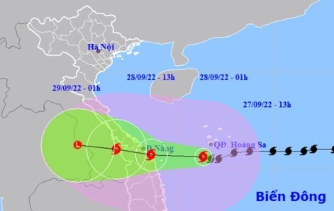 Theo Trung tâm Dự báo Khí tượng Thủy văn Quốc gia, lúc 13h ngày 27/9, tâm bão số 4 trên vùng biển phía Tây Nam quần đảo Hoàng Sa, cách đất liền Đà Nẵng - Quảng Ngãi khoảng 270km về phía Đông. Sức gió mạnh nhất vùng gần tâm bão mạnh cấp 14-15 (150-183km/giờ), giật trên cấp 17.