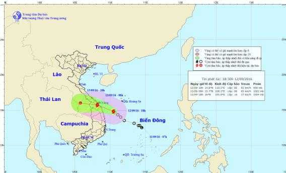 Hồi 18 giờ ngày 12/9, vị trí tâm bão ở vào khoảng 14,8 độ Vĩ Bắc; 110,5 độ Kinh Đông, cách bờ biển Quảng Nam - Bình Định khoảng 160km về phía Đông. Sức gió mạnh nhất ở vùng gần tâm bão mạnh cấp 8 (60-75km/giờ), giật cấp 9 - 11.