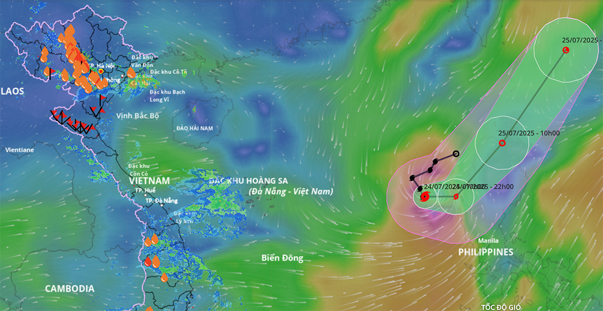 Theo Trung tâm Dự báo khí tượng thủy văn quốc gia, lúc 10h ngày 24/7, vị trí tâm bão số 4 Cỏ May trên vùng biển phía Đông của khu vực Bắc Biển Đông. Sức gió mạnh nhất vùng gần tâm bão mạnh cấp 9-10 (75-102km/giờ), giật cấp 12, di chuyển theo hướng Đông Nam với tốc độ khoảng 10km/h.