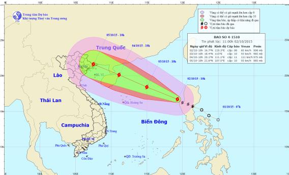 Tin mới nhất từ Trung tâm Dự báo Khí tượng Thủy văn Trung ương, sáng 2/10, bão số 4 (Mujigae) đã vượt qua đảo Lu dông (Philippines) và đi vào Biển Đông.