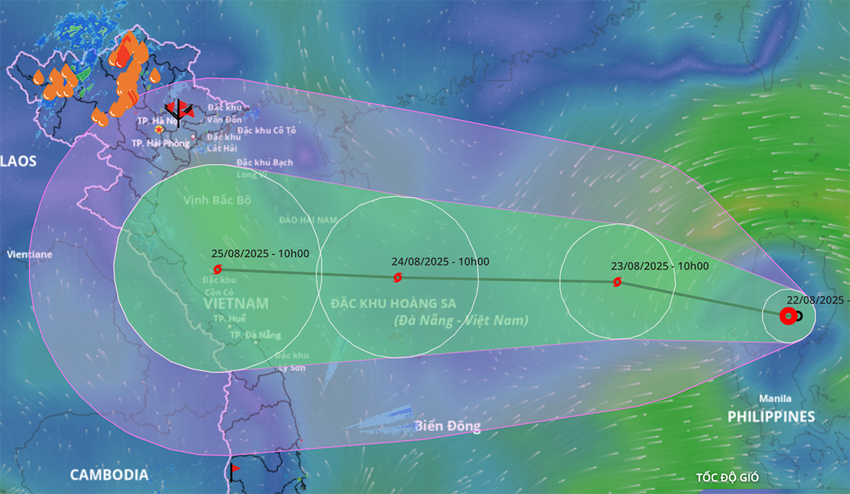 "Khi vào Biển Đông, bão số 5 di chuyển nhanh, tốc độ khoảng 20km/h. Khoảng 24/8, khi di chuyển tới khu vực quần đảo Hoàng Sa, cường độ bão số 5 khả năng đạt cấp 10-11, giật cấp 13-14 và còn có thể mạnh thêm khi đi vào vùng biển vịnh Bắc Bộ.