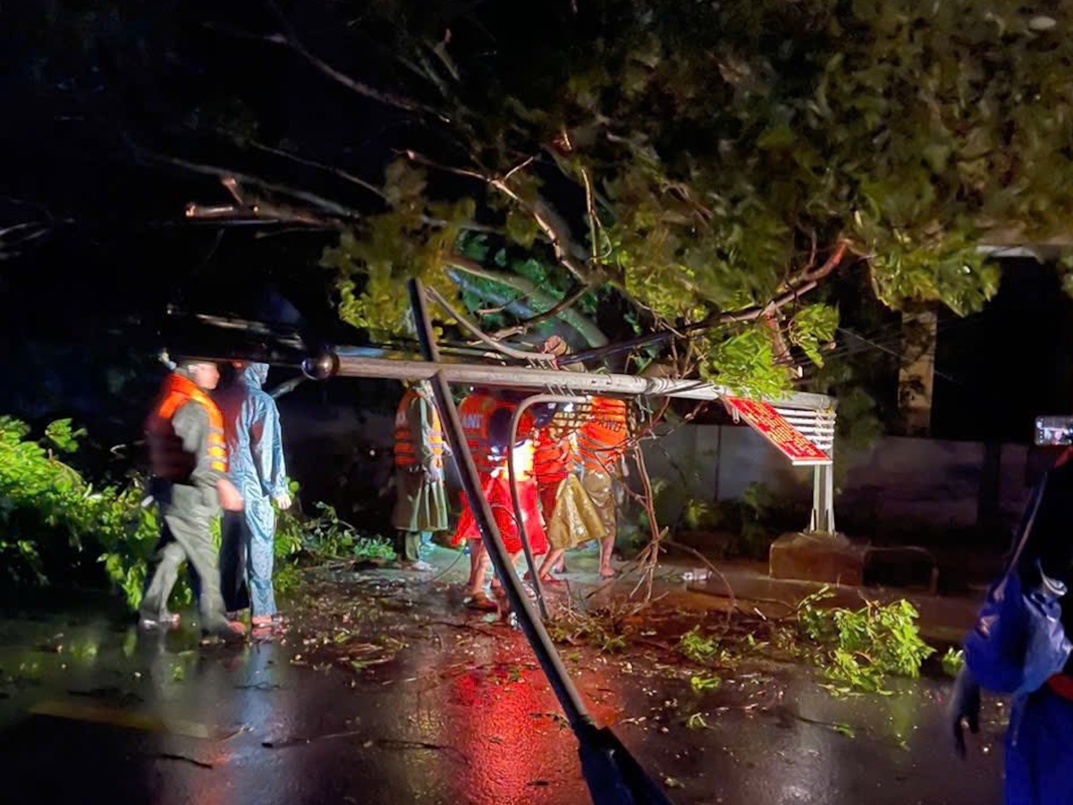 Cột đèn, cây cối trên nhiều tuyến đường ở Hà Tĩnh gãy đổ la liệt sau bão số 5. (Ảnh: CA Hà Tĩnh)