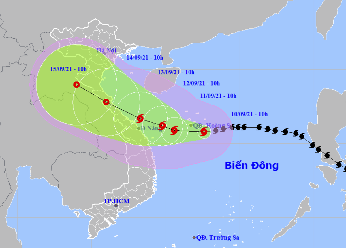 Theo Trung tâm Dự báo KTTV quốc gia, hồi 10h ngày 10/9, bão số 5 (bão Conson) ở ngay trên vùng biển phía Nam khu vực quần đảo Hoàng Sa. Sức gió mạnh nhất vùng gần tâm bão mạnh cấp 10 (90-100km/giờ), giật cấp 12. Bán kính gió mạnh từ cấp 6, giật từ cấp 8 trở lên khoảng 160km tính từ tâm bão.