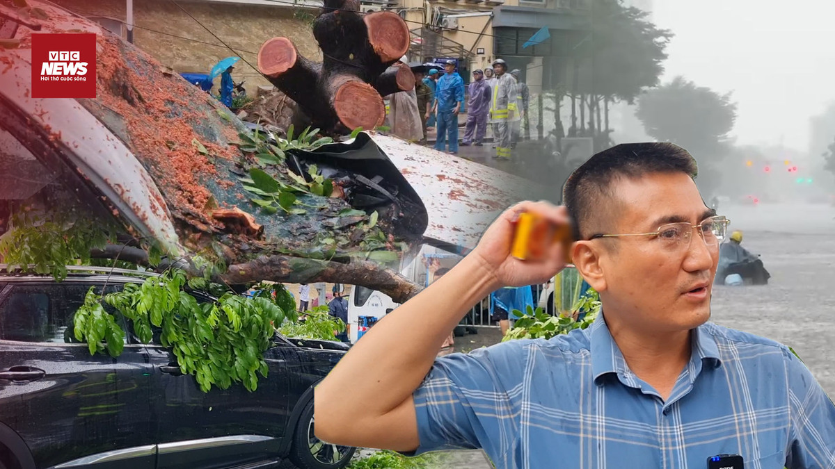 Ảnh hưởng bão Kajiki gây mưa lớn suốt đêm, sáng 26/8 một cây cổ thụ bật gốc ngã xuống, đè trúng ô tô tại ngã tư Trần Phú - Chu Văn An.