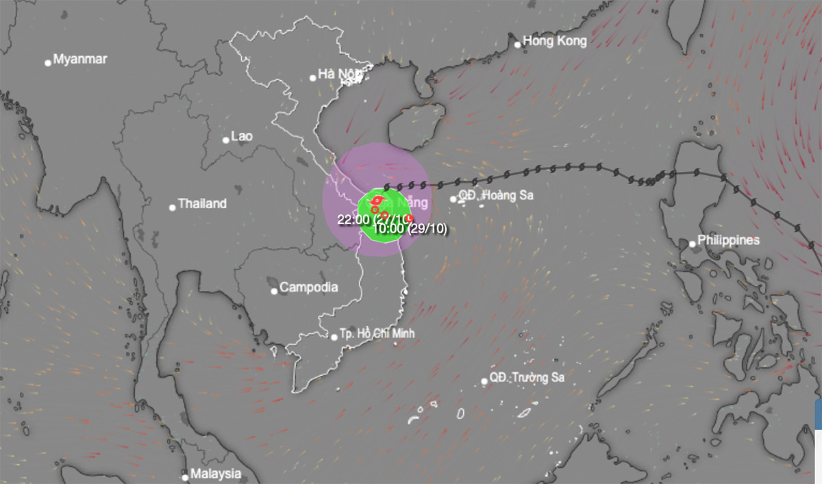 Trung tâm Dự báo khí tượng thuỷ văn quốc gia cho biết, trưa nay 27/10, bão Trà Mi (bão số 6) trên đất liền Thừa Thiên Huế - Đà Nẵng. Sức gió mạnh nhất vùng gần tâm bão mạnh cấp 8-9 (62-88km/h), giật cấp 11.