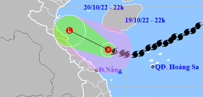 Lúc 22h, vị trí tâm áp thấp nhiệt đới trên vùng biển Quảng Trị đến Quảng Ngãi. Sức gió mạnh nhất vùng gần tâm áp thấp nhiệt đới mạnh cấp 7 (50-61km/h), giật cấp 9, di chuyển theo hướng Tây với tốc độ 10-15km/h.