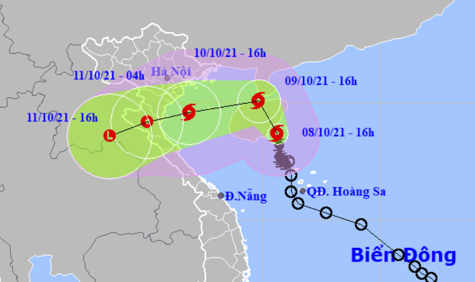 Trong 24 đến 48 giờ tiếp theo, bão có khả năng đổi hướng di chuyển theo hướng Tây Tây Nam, mỗi giờ đi được 10-15km. Đến 16h ngày 10/10, tâm bão ở cách Hải Phòng 150km, Nam Định 100km, Thanh Hóa 110km, Nghệ An 130km, Hà Tĩnh 160km. Sức gió mạnh nhất vùng gần tâm bão mạnh cấp 8-9 (60-90km/giờ), giật cấp 11.