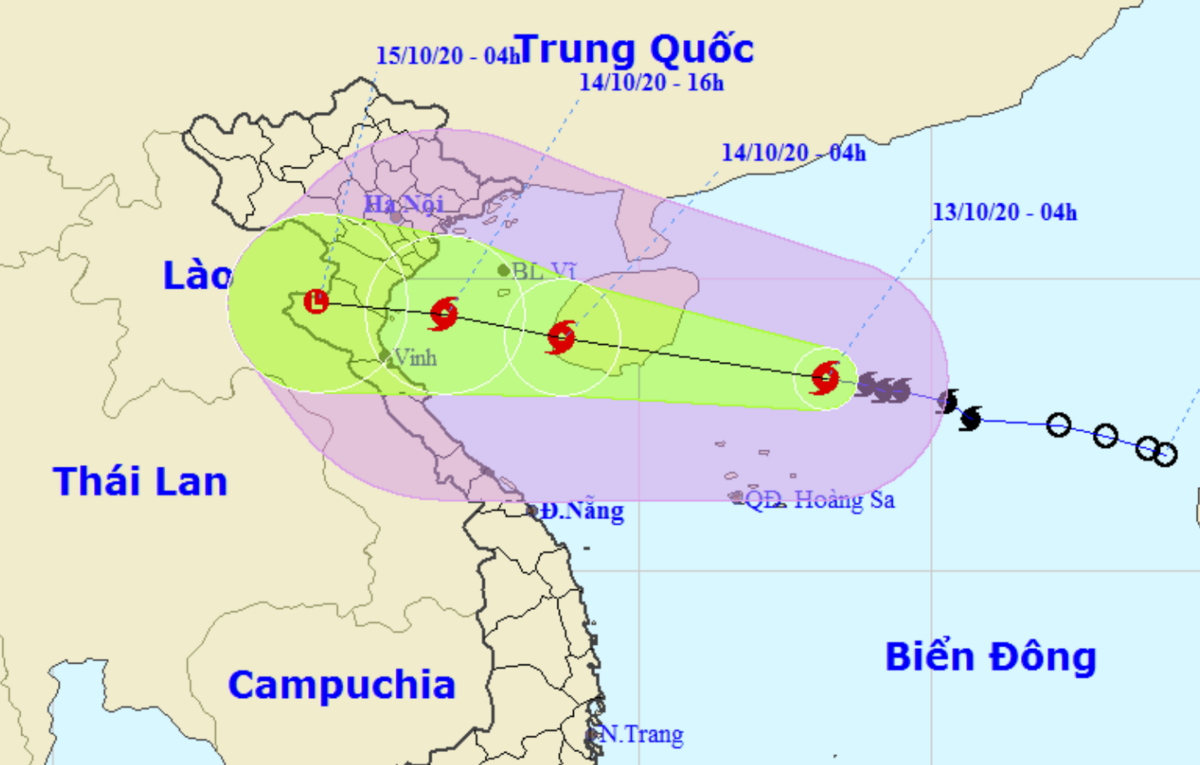 Trong 24 đến 36 giờ tiếp theo, bão di chuyển theo hướng Tây Tây Bắc, mỗi giờ đi được 15-20km. Khoảng gần sáng mai (14/10), bão sẽ đi vào khu vực vịnh Bắc Bộ.