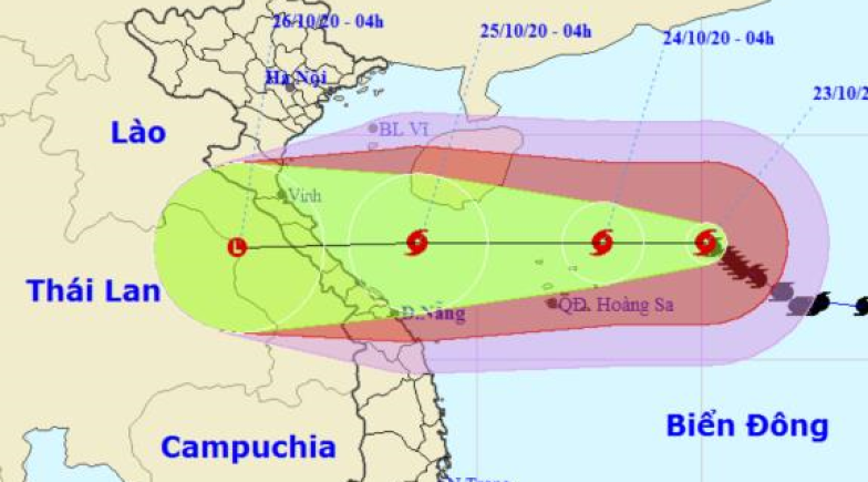 Dự báo trong 24 giờ tới, bão di chuyển theo hướng Tây Tây Bắc, mỗi giờ đi được 5-10km. Đến 4h ngày 24/10, tâm bão ở cách quần đảo Hoàng Sa khoảng 100km về phía Bắc Đông Bắc. Sức gió mạnh nhất vùng gần tâm bão mạnh cấp 11 (100-115km/giờ), giật cấp 13.