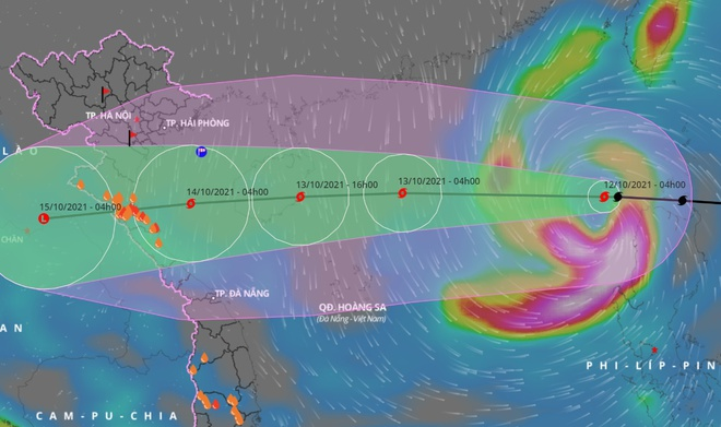 Theo Trung tâm Dự báo KTTV quốc gia, hồi 10h ngày 12/10, tâm bão ở cách quần đảo Hoàng Sa khoảng 720km về phía Đông Đông Bắc. Sức gió mạnh nhất vùng gần tâm bão mạnh cấp 10-11 (90-120km/giờ), giật cấp 13. Bán kính gió mạnh từ cấp 6, giật từ cấp 8 trở lên khoảng 350km tính từ tâm bão.