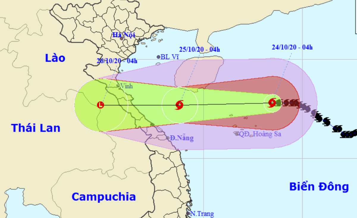 Dự báo trong 24 giờ tới, bão di chuyển theo hướng Tây, mỗi giờ đi được khoảng 15km. Đến 4h ngày 25/10, tâm bão ở cách đảo Hải Nam (Trung Quốc) khoảng 120km về phía Nam Tây Nam. Sức gió mạnh nhất vùng gần tâm bão mạnh cấp 9 (75-90km/giờ), giật cấp 11.