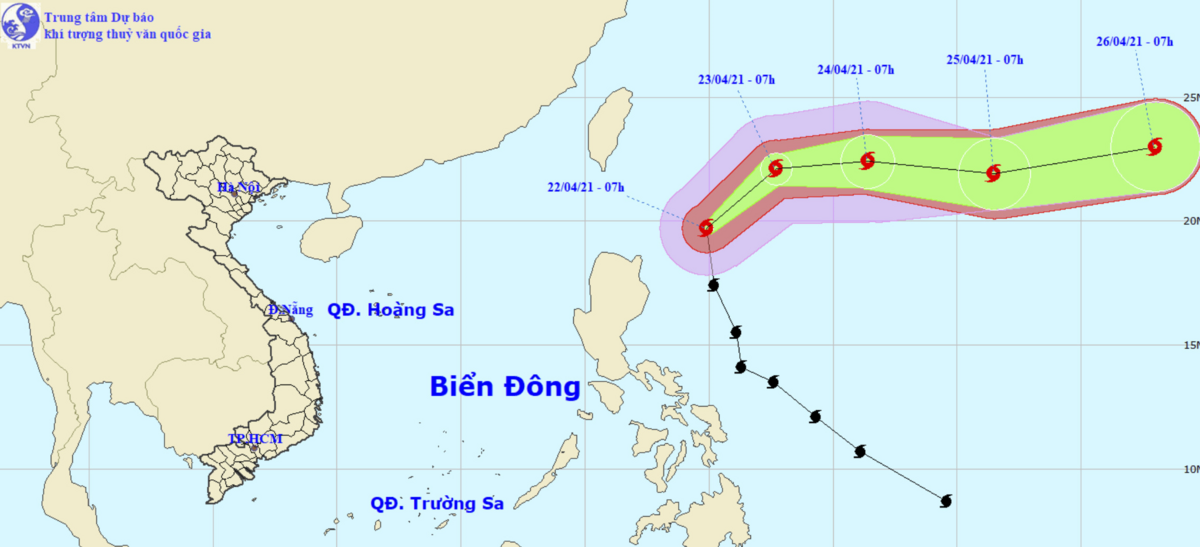 Đến 7h ngày 23/4, tâm bão cách phía Bắc đảo Luzon (Philippines) khoảng 720km về phía Đông Bắc. Sức gió mạnh nhất vùng gần tâm bão mạnh cấp 12 (115-135km/giờ), giật cấp 15.