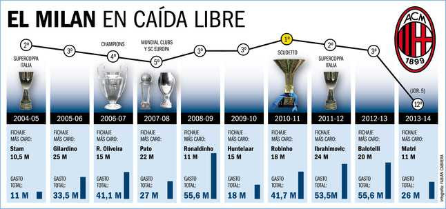 Sâu xa hơn, Milan đang trở thành nơi nhận ‘hàng thải’ của Real và Barca, đó là các trường hợp của Rivaldo, Ibrahimovic, Ronaldinho và Huntelaar. Nhưng cái sai lầm lớn nhất của Milan chính là họ đã bán đi những cầu thủ khi họ đang đạt phong độ cao, trong đó phải kể đến các trường hợp tiêu biểu như Thiago Silva, Ibrahimovic, Boateng, Cassano...