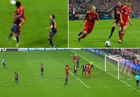 Còn bàn thắng thứ 3 thì Muller đã phạm lỗi với hậu vệ Jordi Alba, tạo điều kiện cho Robben sút tung lưới Valdes lần thứ ba.