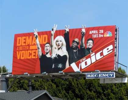 Ngay lập tức, The Voice được ưu ái khung giờ vàng trên: ABC, CBS, NBC hay Fox. Riêng đêm chung kết số đầu tiên của chương trình ngày 29/6/2011 còn có sự góp mặt của Stevie Nicks, Pat Monahan (ca sĩ chính nhóm Train) và Ryan Tedder (OneRepublic).