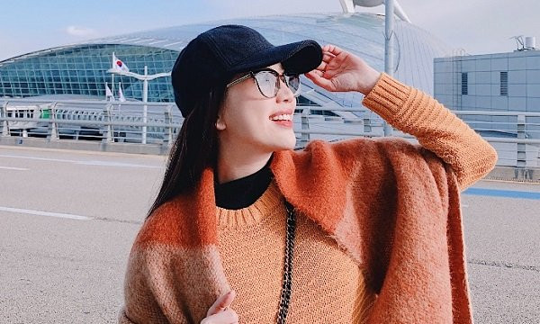 Bảo Thy diện trang phục khá mỏng dù Hàn Quốc đã vào mùa đông.